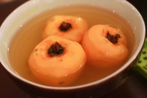 Ngâm quả hồng sau khi gọt vỏ vào rượu từ 3-5 phút.
