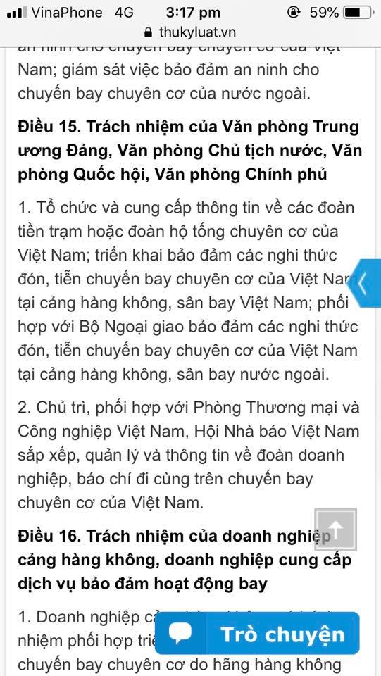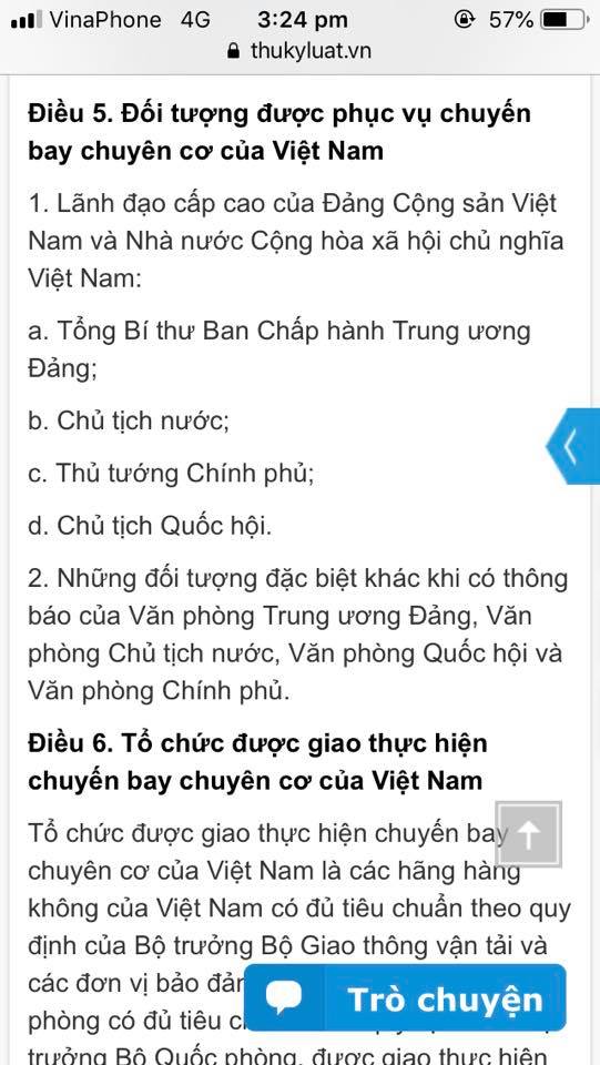 Điều 15 quy định rõ “đối tượng đặc biệt khác” quá giang “tứ trụ” tại điều 5 là “đoàn doanh nghiệp” hoặc “báo chí” đi cùng chuyến bay chuyên cơ.
