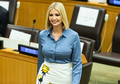 Con gái cả đồng thời là cố vấn của Tổng thống Mỹ hôm 23/9 tham dự cuộc họp tại trụ sở Liên Hợp Quốc ở thành phố New York về chủ đề Bảo vệ Tự do Tôn giáo cùng cha cô và nhiều lãnh đạo cấp cao. Ivanka diện trang phục công sở thoạt nhìn rất thanh lịch, gồm áo sơmi lụa màu xanh và chân váy trắng đính hoa 3D của hãng Prada có giá hơn 2.100 USD.Tuy nhiên, có một điều mọi người xung quanh đều dễ nhận ra là cô trông như không mặc áo lót khi để lộ cả hai đầu ngực trên chiếc áo bó sát. Không rõ Ivanka có biết điều này không nhưng cô vẫn tươi cười chào các quan khách, cũng như chia sẻ các bức ảnh tại sự kiện lên trang cá nhân của mình.
