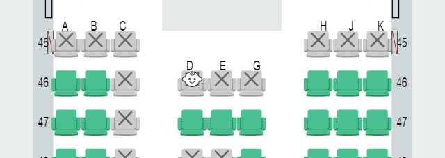 Biểu tượng em bé sẽ hiển thị trên sơ đồ chỗ ngồi trên máy bay Japan Airlines khi hành khách đặt chỗ. Ảnh: Twitter/Rahat Ahmed.