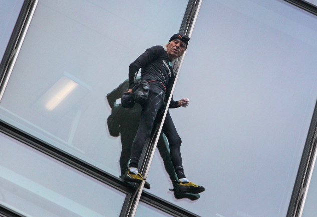 Robert, 57 tuổi, đã leo lên đến đỉnh cao 154m của toà nhà 42 tầng chỉ trong vòng nửa tiếng đồng hồ, mà không có sự cho phép hay bất kỳ thiết bị bảo hộ nào. Màn “trình diễn” của ông đã khiến nhiều người đi đường dừng lại nhìn, trầm trồ và chụp ảnh.