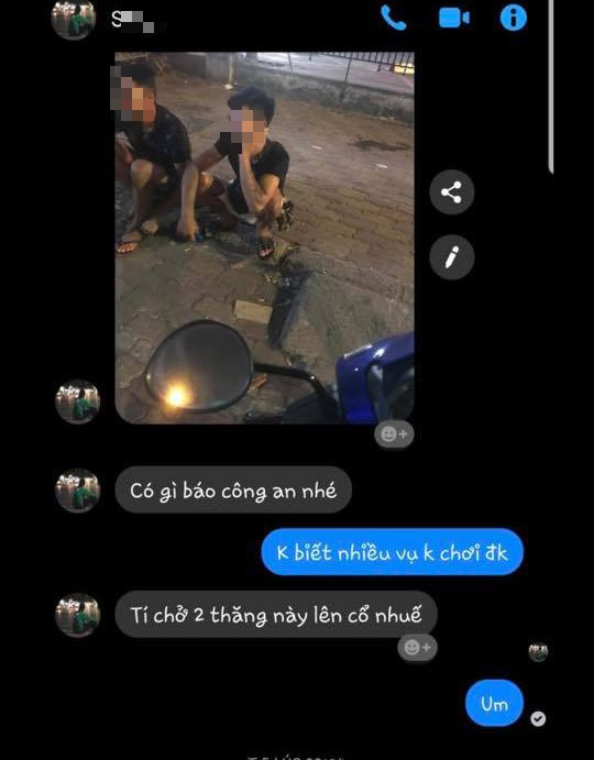 Đến khoảng 20h30 cùng ngày, S. nhắn tin cho Long bảo đang ở khu vực Mỹ Đình rồi chụp hình hai vị khách kèm tin nhắn ‘Có gì báo công an nhé, tí chở hai thằng này lên Cổ Nhuế’.