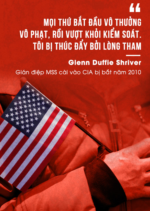 Năm 2007, Shriver đăng ký vào Cơ quan Mật thám Quốc gia thuộc CIA, chuyên trách các hoạt động bí mật ở nước ngoài. Anh nhận được khoản thù lao gần 40.000 USD từ MSS để tham gia kỳ thi. Năm 2010, sau gần ba năm theo dõi, FBI quyết định bắt giữ Shriver.