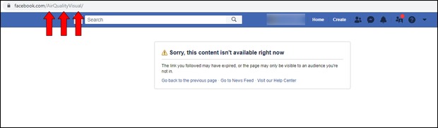 Nhiều người dùng Facebook Việt Nam cho biết không thể tìm thấy fanpage AirVisual hoặc truy cập lịch sử thất bại.