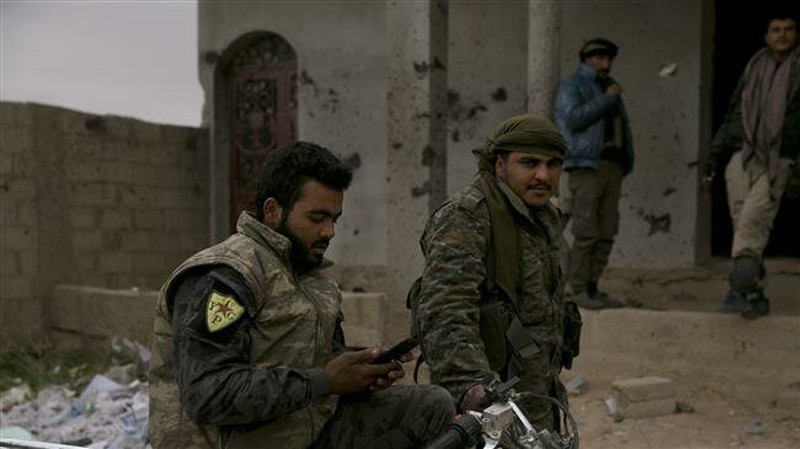 Các thành viên SDF bên ngoài TP Baghouz , Syria. Ảnh: AP