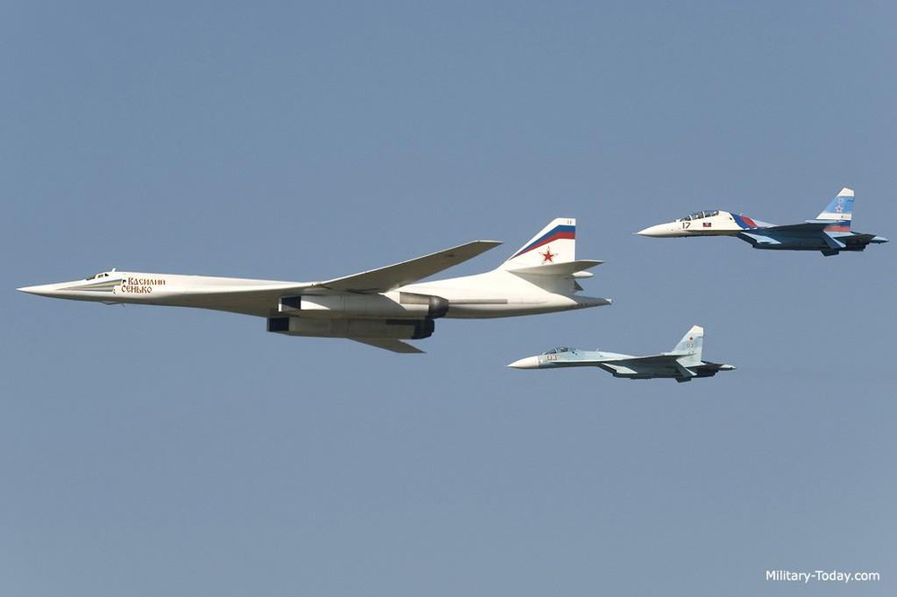 Không thể không nhắc tới "Thiên Nga Đen" Tu-160 - một loại máy bay ném bom chiến lược tầm xa với thiết kế cánh cụp cánh x̣e, ra đời làm đối trọng của B-1 Lancer do Mỹ sản xuất. Nguồn ảnh: NI.