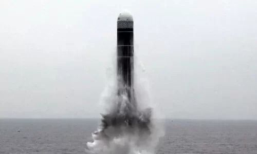 Tên lửa Pukguksong-3 được Triều Tiên phóng thử sáng 2/10. Ảnh: KCNA.