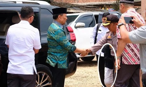 Bộ trưởng An ninh Indonesia Wiranto (áo xanh) ngay trước lúc bị đâm dao ở thành phố Pandeglang hôm nay. Ảnh: Tempo.