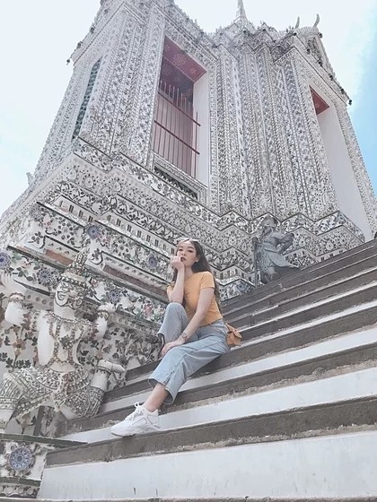 Băng Châu trong chuyến du lịch nước ngoài đầu tiên tại Thái Lan. Trên ảnh, cô chụp tại chùa Wat Arun.