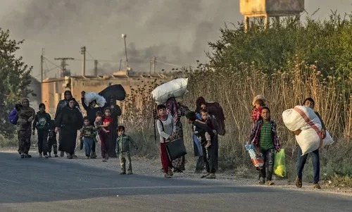 Người dân Syria sơ tán khỏi khu vực bị Thổ Nhĩ Kỳ pháo kích hôm 9/10. Ảnh: AFP.
