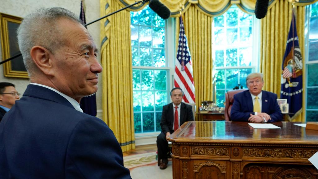 Tổng thống Mỹ Donald Trump tiếp phó thủ tướng Trung Quốc Lưu Hạc, trưởng phái đoàn đàm phán thương mại Trung Quốc, tại Nhà Trắng, ngày 11/10/2019. REUTERS/Yuri Gripas