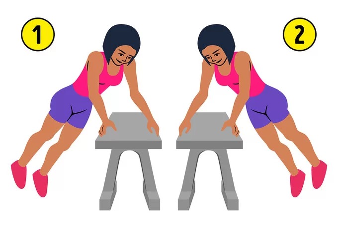 Chuẩn bị một chiếc ghế dài có độ cao , hai tay chống vào hai bên cạnh ghế, bật nhảy qua hai bên liên tục 15 lần.
