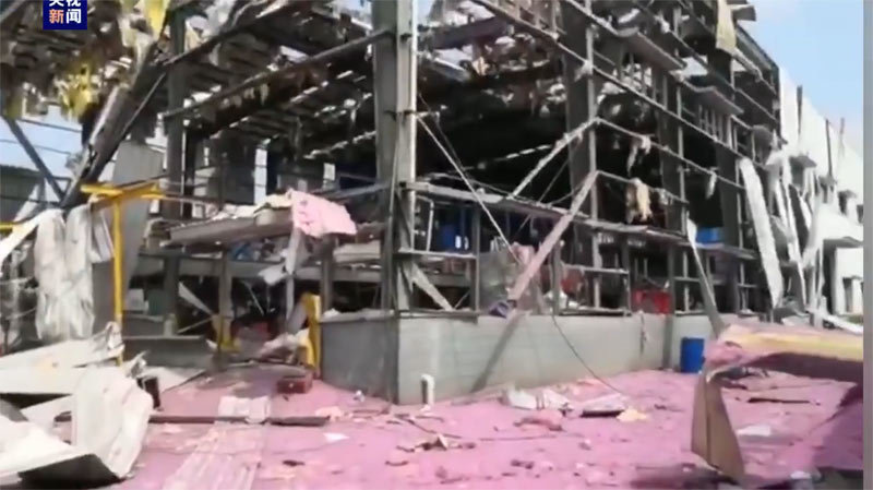 Video từ hiện trường cho thấy mức độ tàn phá khủng khiếp đối với nhà máy. Cơ sở chẳng còn lại gì ngoài bộ khung.