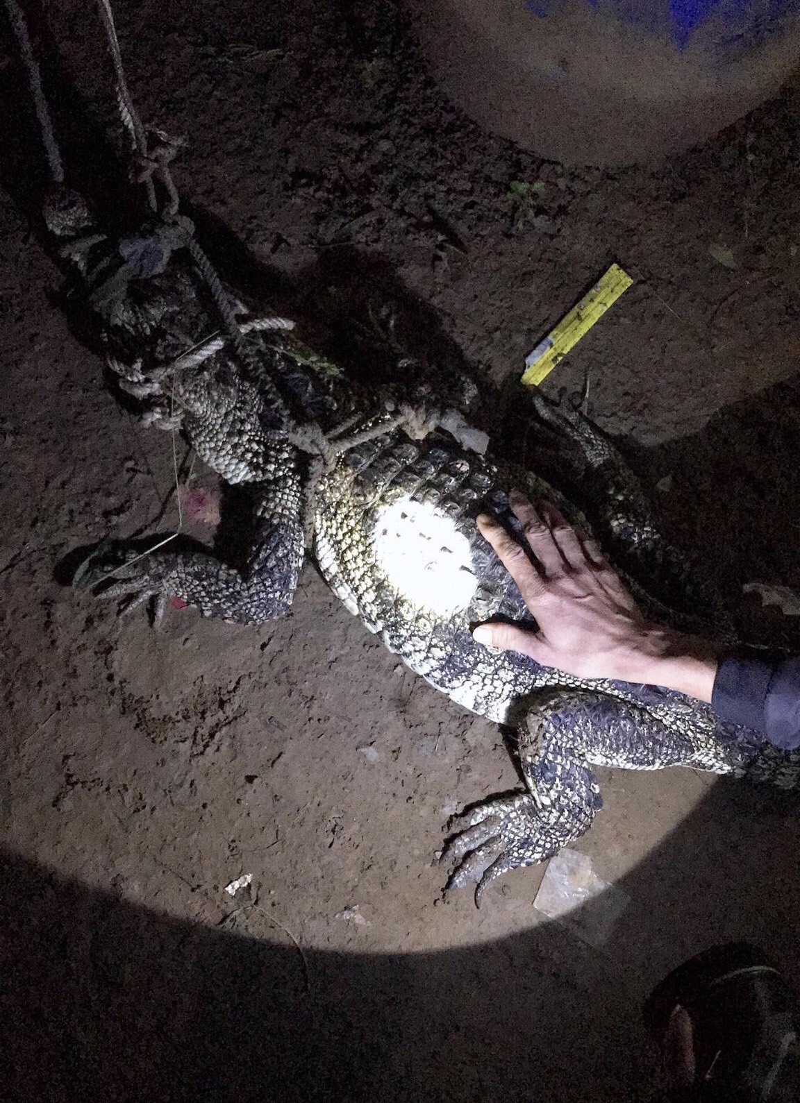 Lo sợ nguy hiểm, người dân bắt con cá sấu hoang dã giao cho lực lượng chức năng để xử lý.