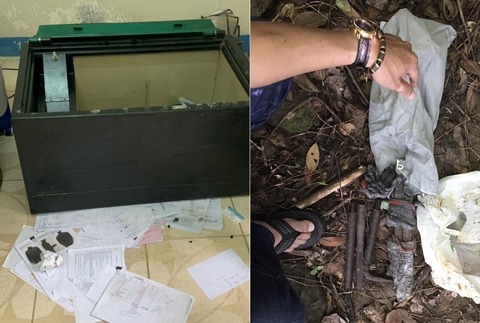 Dụng cụ gây án và két sắt bị các đối tượng đục phá