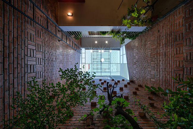 Giếng trời bố trí ngay trên khoảng sân, vừa cung cấp ánh sáng cho cây, vừa mang ánh sáng tự nhiên cho căn nhà.