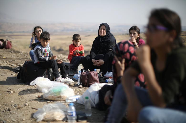 Một nhóm người Kurd ngồi chờ tại cửa khẩu Semalka, gần thành phố Derik (Syria), để vượt biên sang Iraq hôm 21/10.