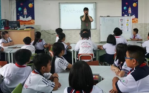 Một tiết học tiếng Anh với giáo viên nước ngoài tại trường Tiểu học Tân Sơn Nh́ (quận Tân Phú, TP HCM). Ảnh: Mạnh Tùng.