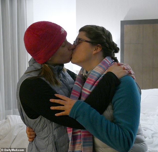 Hình ảnh bà Hills, 32 tuổi, 'khóa môi' với cô Desjardins, 24 tuổi được trang Daily Mail đăng tải