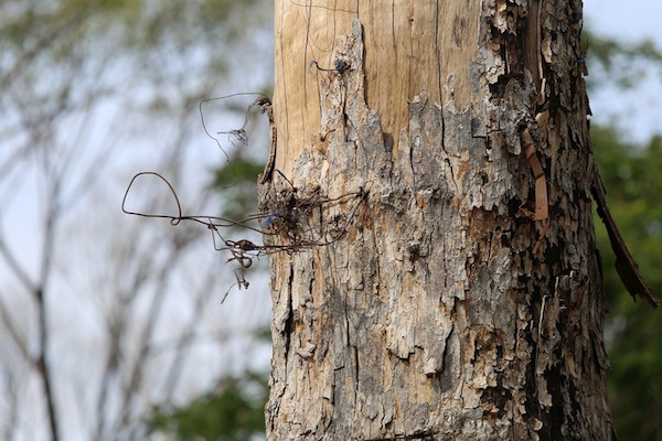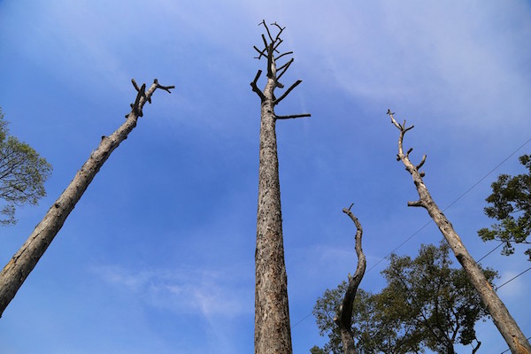 Những cây cổ thụ rợp bóng mát lúc trước giờ chỉ còn lại cái xác khô.