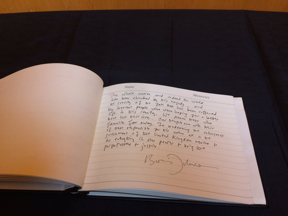 Thủ tướng Anh ghi sổ tang các nạn nhân. Ảnh: ITN