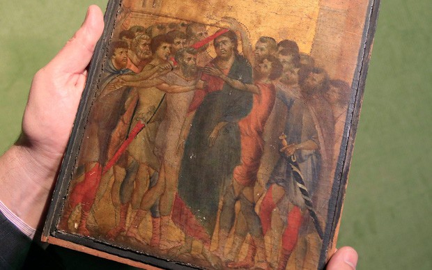 Cụ thể, tranh có tên "Christ Mocked" do danh họa Cimabue vẽ nên. Đây là một phần của bức tranh lớn hơn từ năm 1280. Trong bức tranh toàn cảnh ấy, Cimabue đã vẽ 8 cảnh về chúa Jesus.