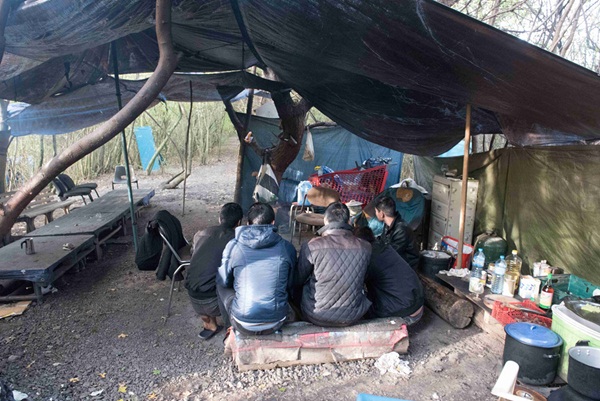 Nhiều người nhập cư bất hợp pháp vào Anh phải chầu trực trong rừng ở Pháp hàng tháng trời. Ảnh: The Sun.