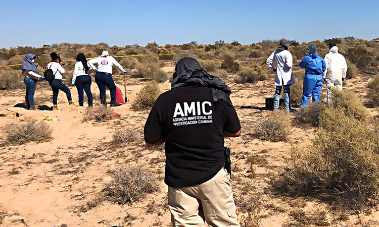 Giới chức bang Sonora đang xác minh danh tính và nguyên nhân cái chết của những người bị vứt ở bãi đất trống này.