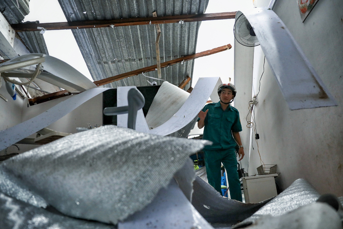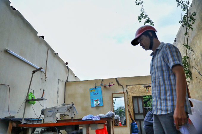 Anh Nguyễn Thiện Nhân (thôn 2, xã Xuân Hải) sững sờ nhìn căn nhà bị tốc mái sau bão.