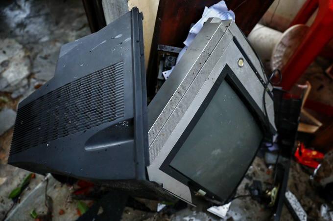 Chiếc tivi của một nhà dân ở thôn 1 bị hư hỏng nặng.