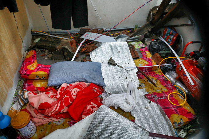 "Khoảng 20h hôm qua, mưa lớn kèm giông lốc mạnh khiến mái tôn nhà tôi bị bay mất. Đồ đạc trong nhà đều bị ướt, hư hỏng hết", anh Nhân nói.