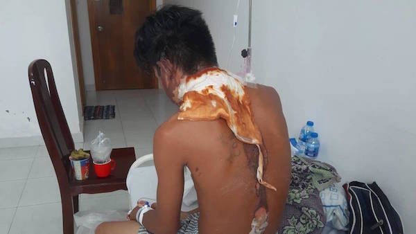 Theo đó, nạn nhân tên là L.P.H (SN 1995, ngụ thị trấn Cái Vồn) nhập viện trong tình trạng bị bỏng nặng, nhiều vùng mặt, cổ, lưng, bị tróc da. Bác sĩ nhận định anh H. bỏng độ III.