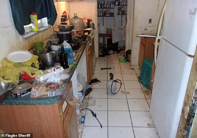 Căn nhà "hoàn toàn là một mớ nhếch nhác" với Rác rưởi, chất thải động vật và gián bò khắp nơi, thực phẩm ôi thiu trong các tủ lạnh và thậm chí không có nước máy (Ảnh: Cảnh sát hạt Flagler)