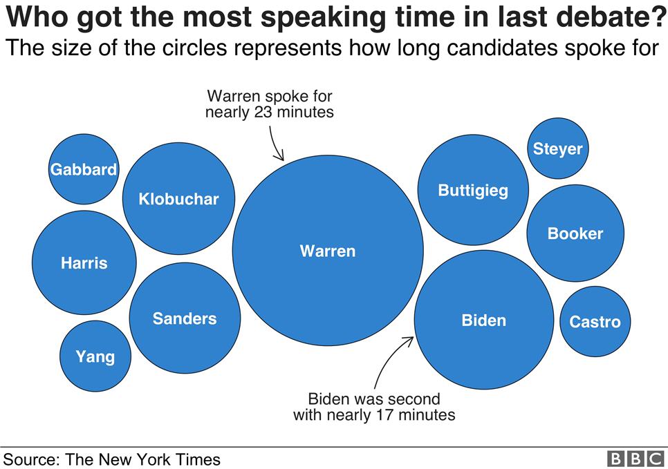 Các ứng cử viên có một giới hạn thời gian nghiêm ngặt khi trả lời câu hỏi, nhưng được cho thì giờ phản bác mỗi khi tên của họ được đối thủ đề cập - điều này giải thích tại sao Warren nói nhiều hơn năm phút so với bất kỳ ai khác trên sân khấu.