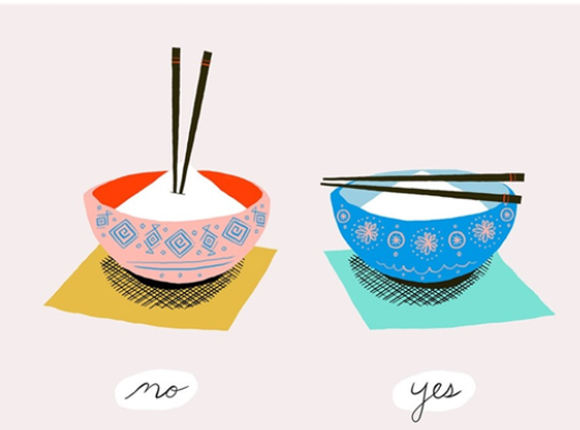 Trong văn hóa của người Á Đông, dùng đũa cắm thẳng vào bát cơm là hành vi tối kỵ. Bởi hình ảnh này tương tự với việc cắm nhang vào bát hương để cúng người đã khuất.