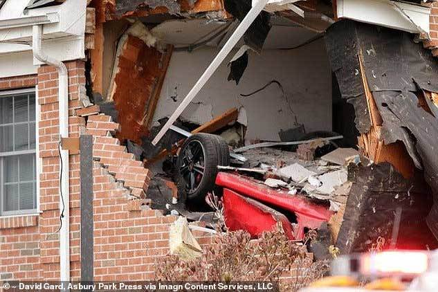 Chiếc xe thể thao giá 50.000USD, tương đương 1,2 tỷ đồng, đã đâm thủng bức tường gạch của một ngôi nhà ở tầng 2, ở độ cao 4,5m so với mặt đất.