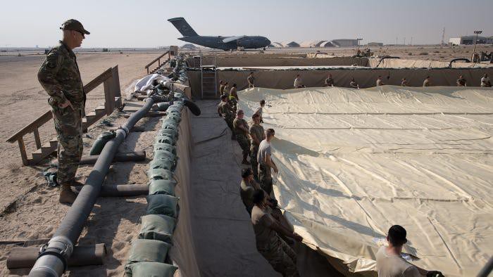 Mang được xăng từ "nhà" đến "chiến trường" đã là một điều khó khăn, việc lưu trữ và bảo quản số nhiên liệu, xăng dầu này cũng là cả một vấn đề vô cùng khó khăn. Nguồn ảnh: USAF.