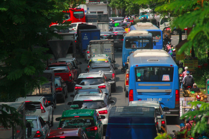 Các tuyến đường Hoàng Văn Thụ, Nguyễn Văn Trỗi cũng tắc. Thời điểm kẹt xe giữa trưa nắng khiến nhiều người mệt mỏi,