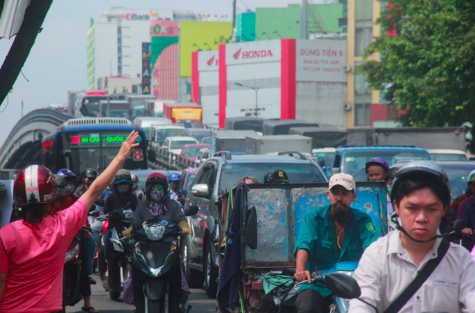 Cửa ngõ sân bay Tân Sơn Nhất dường như lúc nào cũng ở trong tình trạng ùn tắc. Hàng ngàn phương tiện kẹt cứng trên cầu, dưới đường. Nhiều hành khách vội vàng xuống xe đi bộ cho kịp giờ bay.