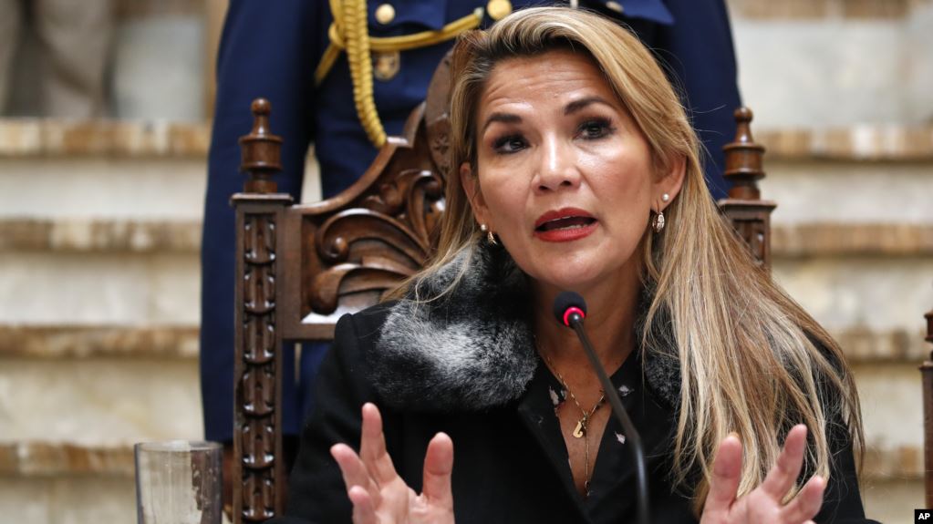 Tổng thống lâm thời của Bolivia, Jeanine Anez, phát biểu trong một cuộc họp báo ở La Paz, Bolivia, ngày 15 tháng 11, 2019
