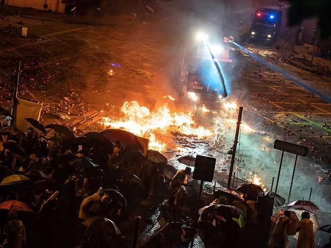 Cuộc biểu t́nh căng thẳng giữa người dân và cảnh sát tại trường Đại học Bách khoa Hong Kong. Suốt 24 giờ không ngủ và vẫn c̣n ít nhất 600 người biểu t́nh bị mắc kẹt trong khuôn viên trường.