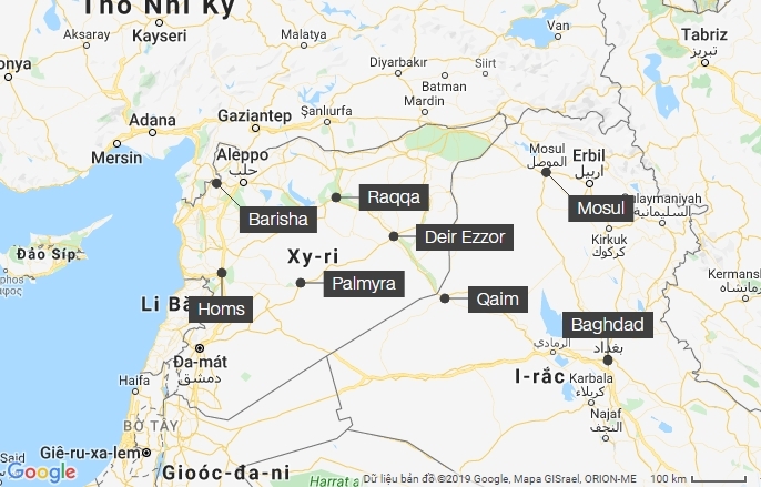 Các vị trí Baghdadi từng ẩn náu. Đồ họa: Google Maps.