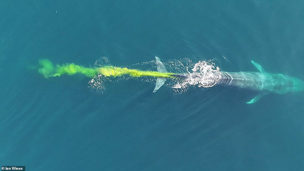 Khi nhiếp ảnh gia phong cảnh Ian Wiese đang quay phim ở Point Picquet, phía nam thành phố Pert (Úc), thì phát hiện con cá voi lúc đó đang bơi dọc theo bờ biển Tây Australia trên hành trình di cư về phía nam. Các dòng chất thải của con cá voi này đã được đội nghiên cứu ghi hình lại. "Chúng tôi đã để ý có một vài con cá voi xanh cách bờ biển 2 km và tôi đã chờ ở đó đến lúc nó bắt đầu "hành sự"- Nhiếp ảnh gia chia sẻ.