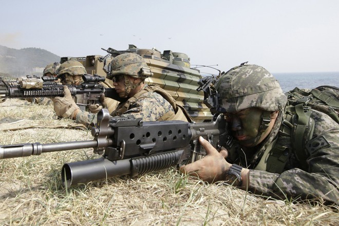 Lính thủy quân lục chiến Hàn Quốc và Mỹ trong một cuộc tập trận chung. Ảnh: AP.