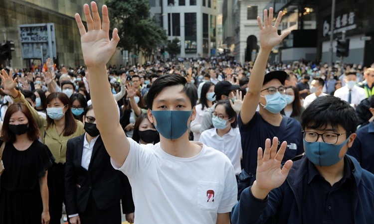 Người biểu tình tham gia một cuộc tuần hành tại quận Trung tâm, Hong Kong, ngày 15/11. Ảnh: Reuters.