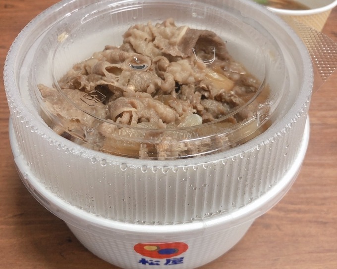 Cơm nấu từ nhà bếp chi nhánh Matsuya rồi mang đến, thay hai lần một ngày. Lần thứ nhất vào buổi sáng, trước giờ cơm trưa và lần thứ hai là vào buổi chiều muộn. Theo trải nghiệm của nhiều người, chất lượng cơm thịt bò hộp không thua gì khi dùng tại nhà hàng. Thịt mỏng, mềm, thấm vị. Cơm dẻo.