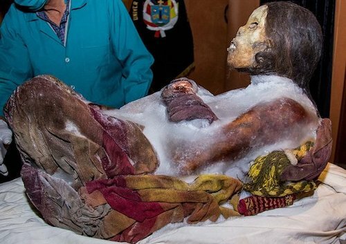Xác ướp cô gái đóng băng, ở độ tuổi khoảng 12-14, vẫn còn nguyên vẹn sau hơn 500 năm. Người Inca có tập tục hiến tế những đứa trẻ trên đỉnh núi để mong thần linh bảo vệ khỏi các hiện tượng thiên nhiên thảm khốc như núi lửa phun trào, lở đất hoặc khí hậu khắc nghiệt.