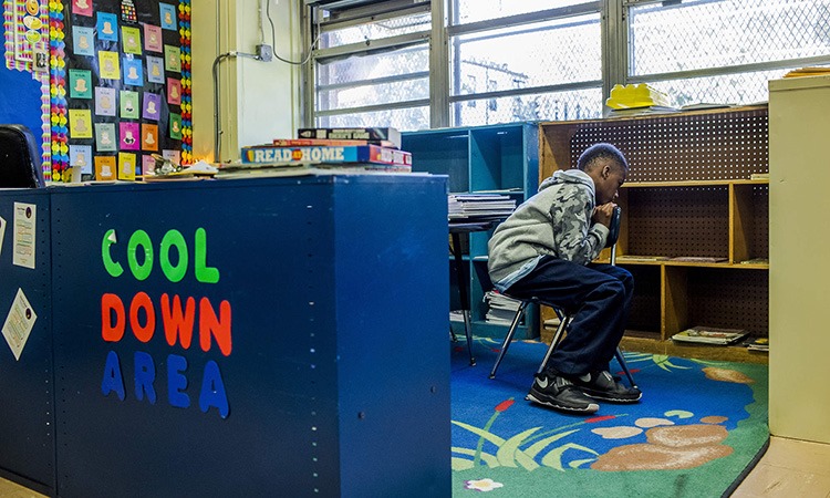 Darnell ngồi một mình trong lớp tại trường công số 76 ở Manhattan, New York, Mỹ. Ảnh: NY Times.