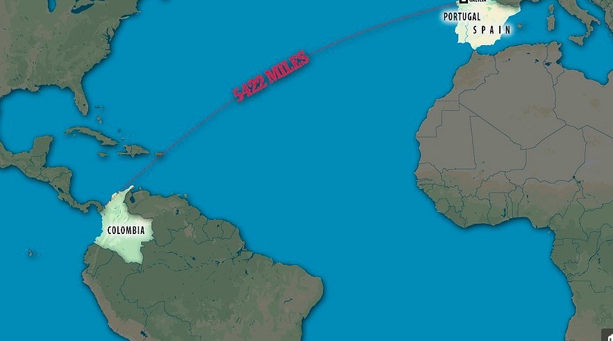 Tàu ngầm trên bị theo dõi khi nó đi vượt biển Đại Tây Dương với hành trình dài 7.690km từ Colombia tới châu Âu.