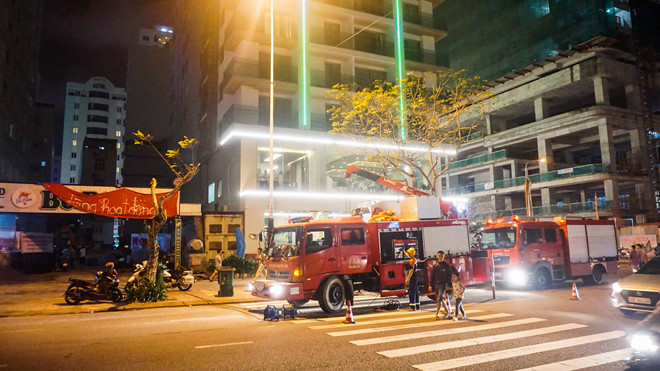 Chứng kiến cảnh tượng quá nguy hiểm, người dân và nhân viên khách sạn nhanh chóng báo lực lượng chức năng. Nhận tin báo, lực lượng Cảnh sát PCCC và Cứu nạn cứu hộ Công an TP.Đà Nẵng, lập tức điều 4 xe chuyên dụng, cùng hàng chục cán bộ chiến sĩ phối hợp với Đội Cảnh sát hình sự, ma tuý (Công an Q.Sơn Trà) nhanh chóng có mặt tại hiện trường.
